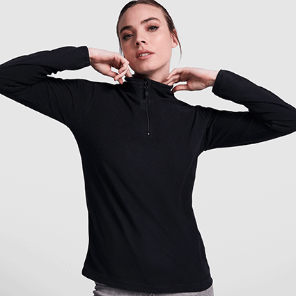 Micropolar con media cremallera en cuello y protector de barbilla. Puños con ribete elástico a tono. 100% poliéster micropolar, 155 g/m².